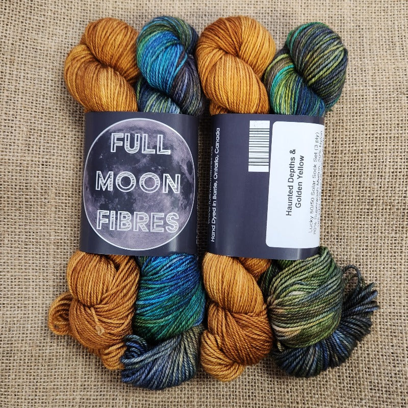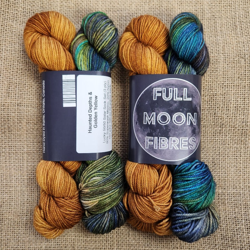 Full Moon Fibres Lucky 50/50 Sock Set - Haunted Depths / Golden Yellow