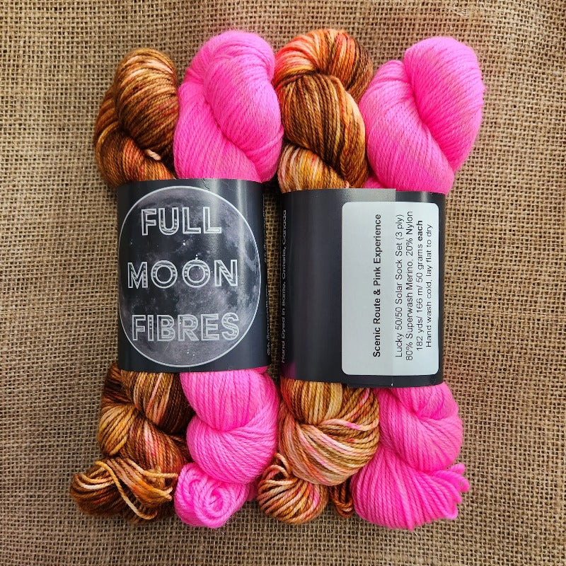 Full Moon Fibres Lucky 50/50 Sock Set - Scenic Route / Pink Experience