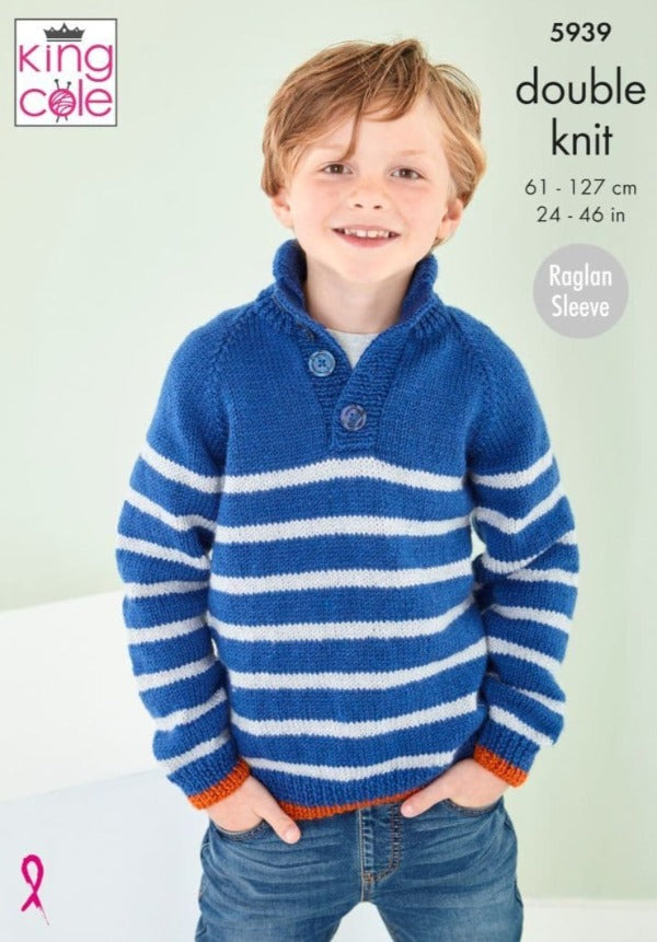 King Cole Leaflet 5939, DK Henley Pullovers