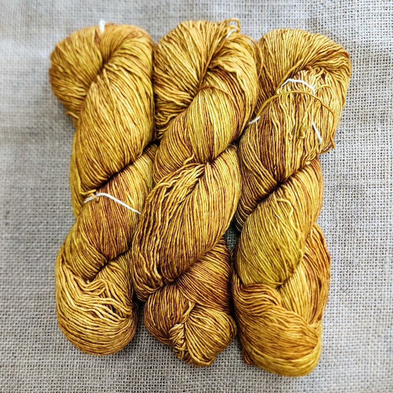 Please note that with hand-dyed yarn every skein might be slightly different - they can definitely be different from previous iterations of the same colour, but even each skein can be different from the other. Please don’t hesitate to reach out to us for pictures of what we have on hand, or include in your notes at check out your preference - that you want the skein with the most green, or the brightest skein, the darkest skein etc etc. We will do everything within our power to help you get the perfect skein for your project~