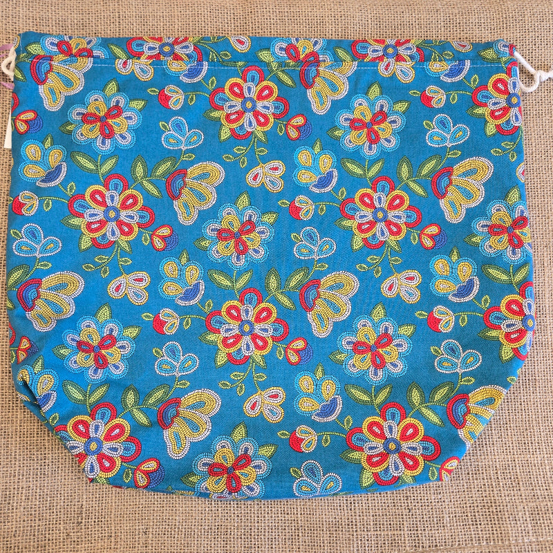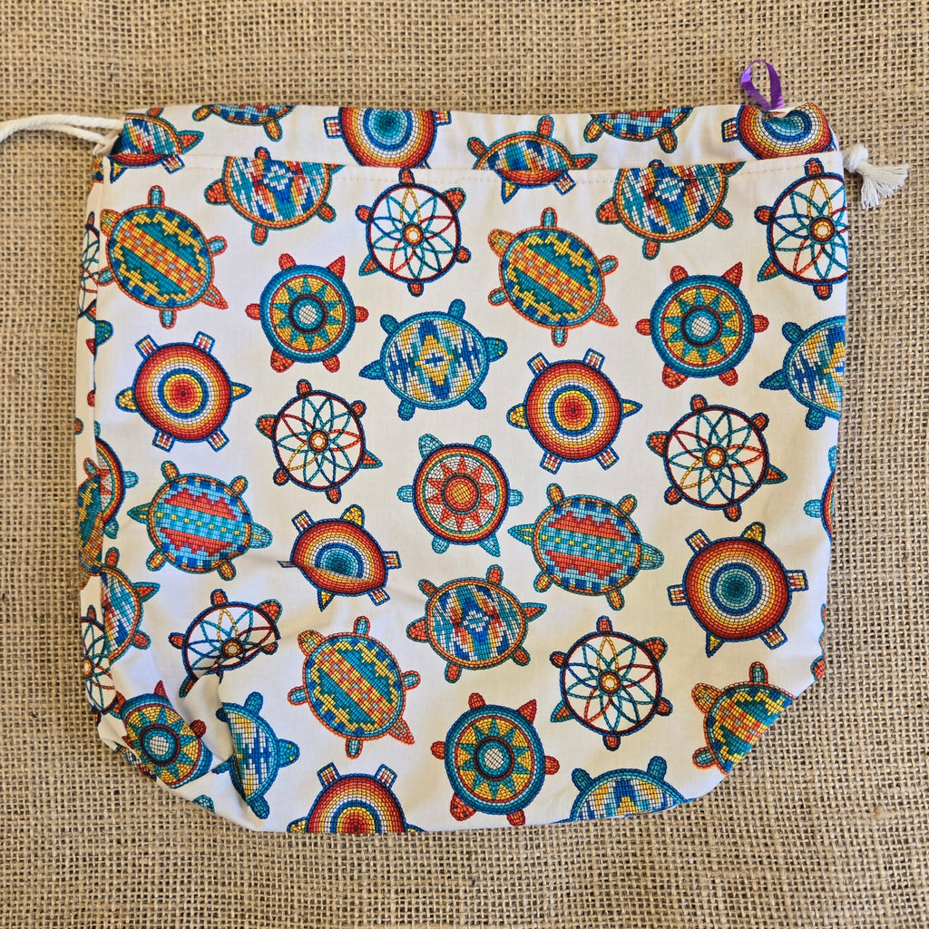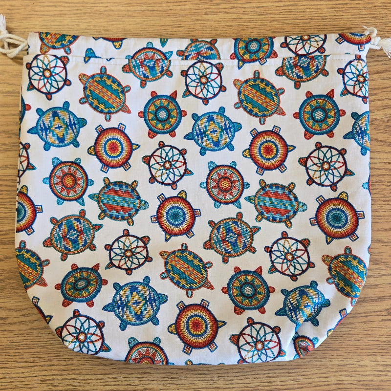 The "Beaded Turtles on Cream", and "Beaded Flowers on Turquoise" fabrics are from a collection called Tucson by Elizabeth's Studio, Elizabeth's Studio donates a portion of the proceeds from the sales of the Tucson fabric collection to First Nations Development Institute (First Nations) and Native Women's Association of Canada (NWAC).