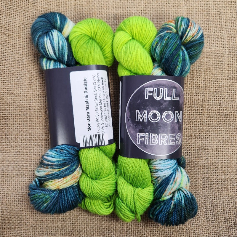 Full Moon Fibres Lucky 50/50 Sock Set - Monstera Mash / Radiate