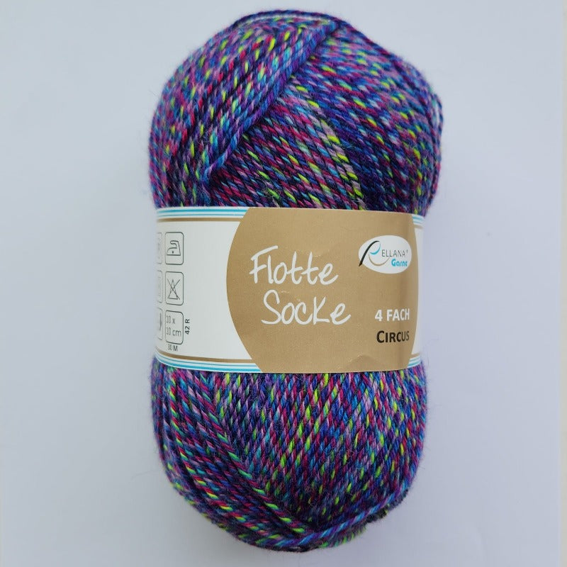 Rellana Garne Flotte Socke Circus 4-Ply - 1690 Blue Multi