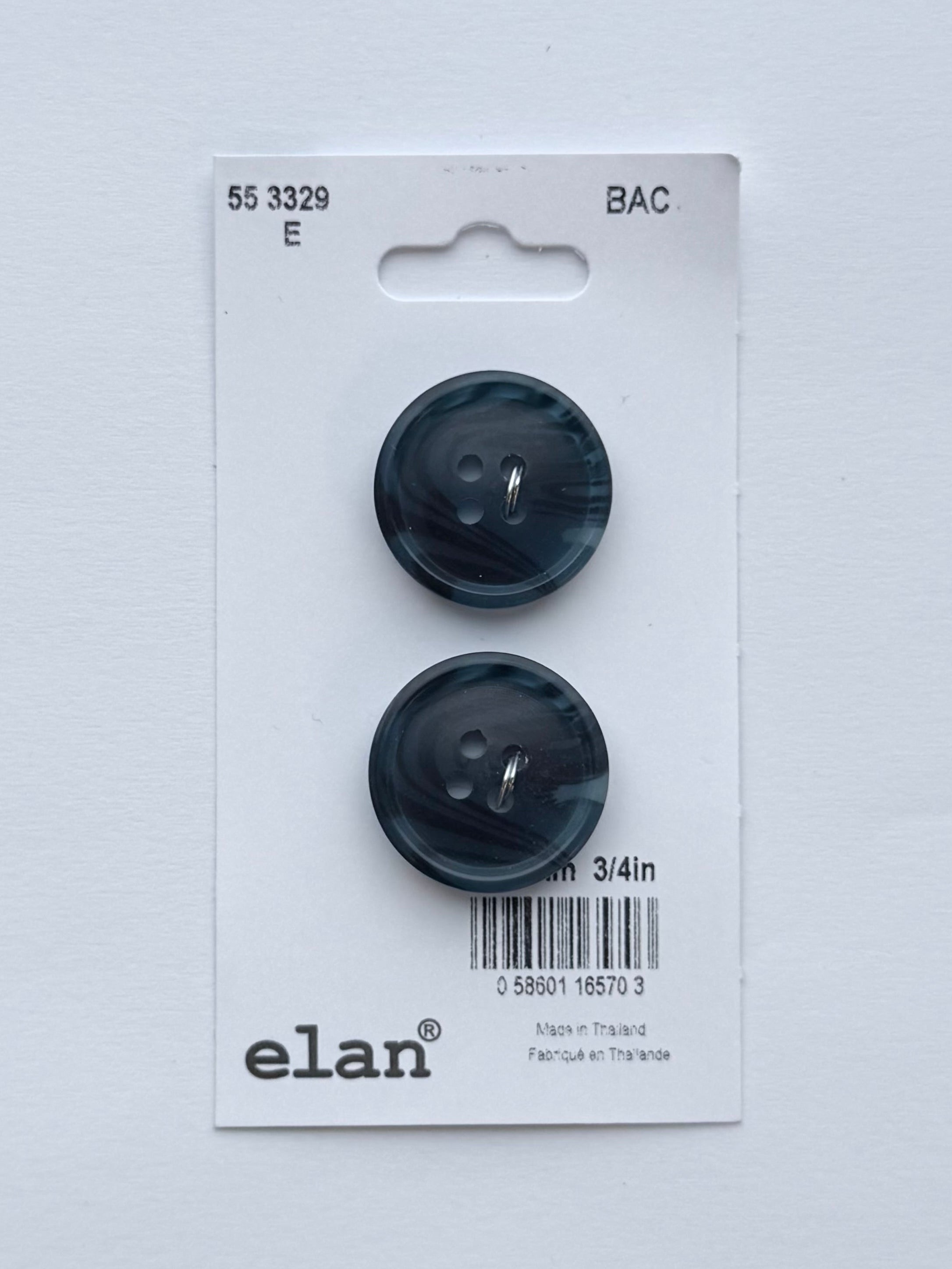 Elan Marbled Teal Blue 4-Hole Button, 20mm (3/4") is backordered and will ship as soon as it is back in stock.