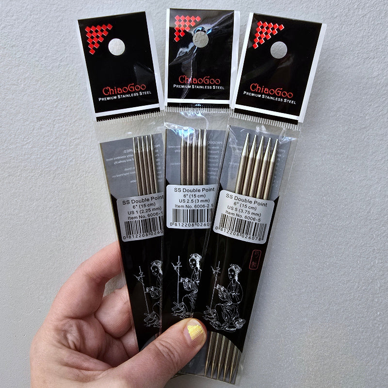 ChiaoGoo Stainless Steel DPNs, 15cm/6" - 2.00mm / US0 is backordered and will ship as soon as it is back in stock.