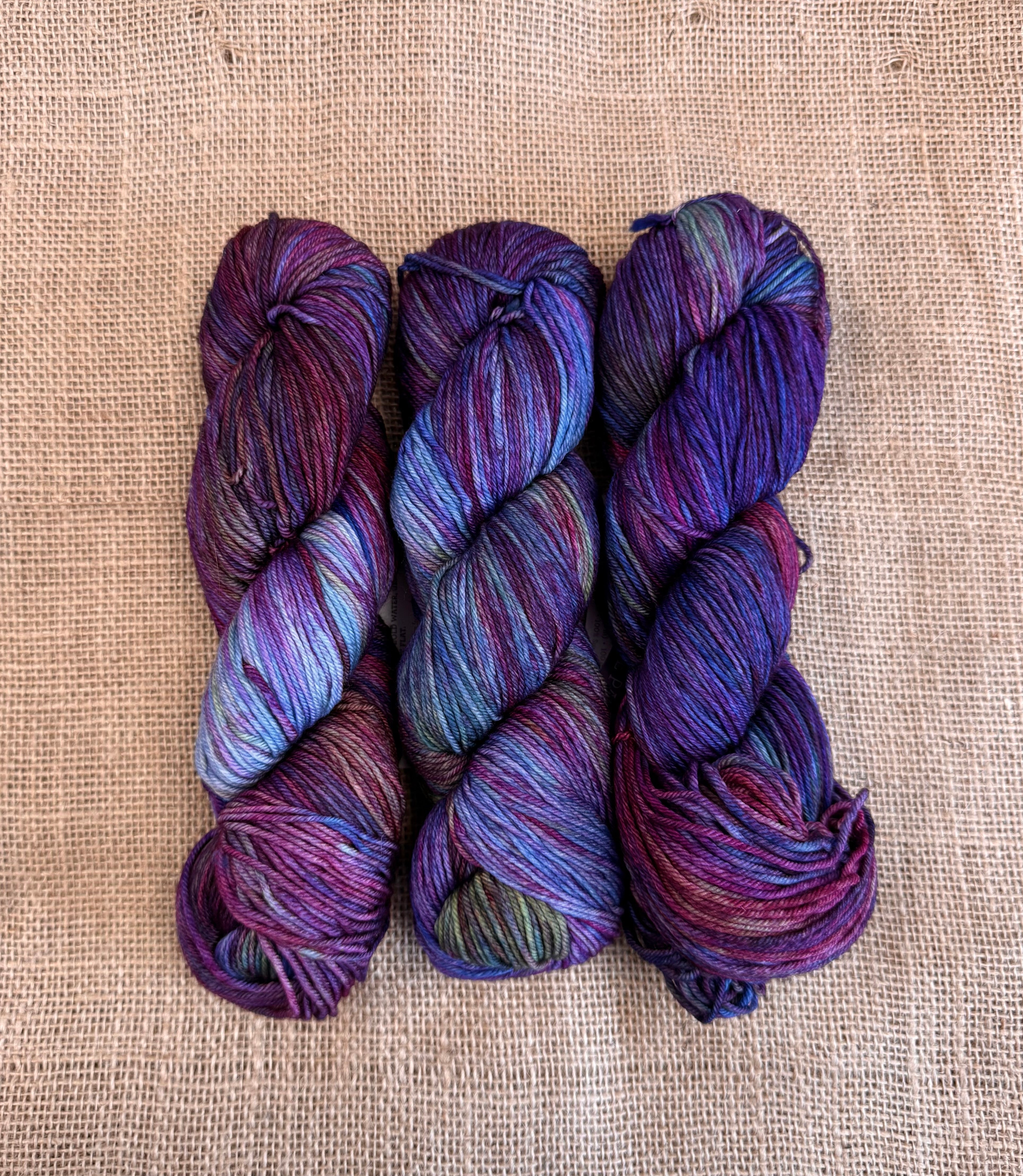 Please note that with hand-dyed yarn every skein might be slightly different - they can definitely be different from previous iterations of the same colour, but even each skein can be different fron the other. Please don’t hesitate to reach out to us for pictures of what we have on hand, or include in your notes at check out your preference - that you want the skein with the most green, or the brightest skein, the darkest skein etc etc. We will do everything within our power to help you get the perfect skein for your project~
