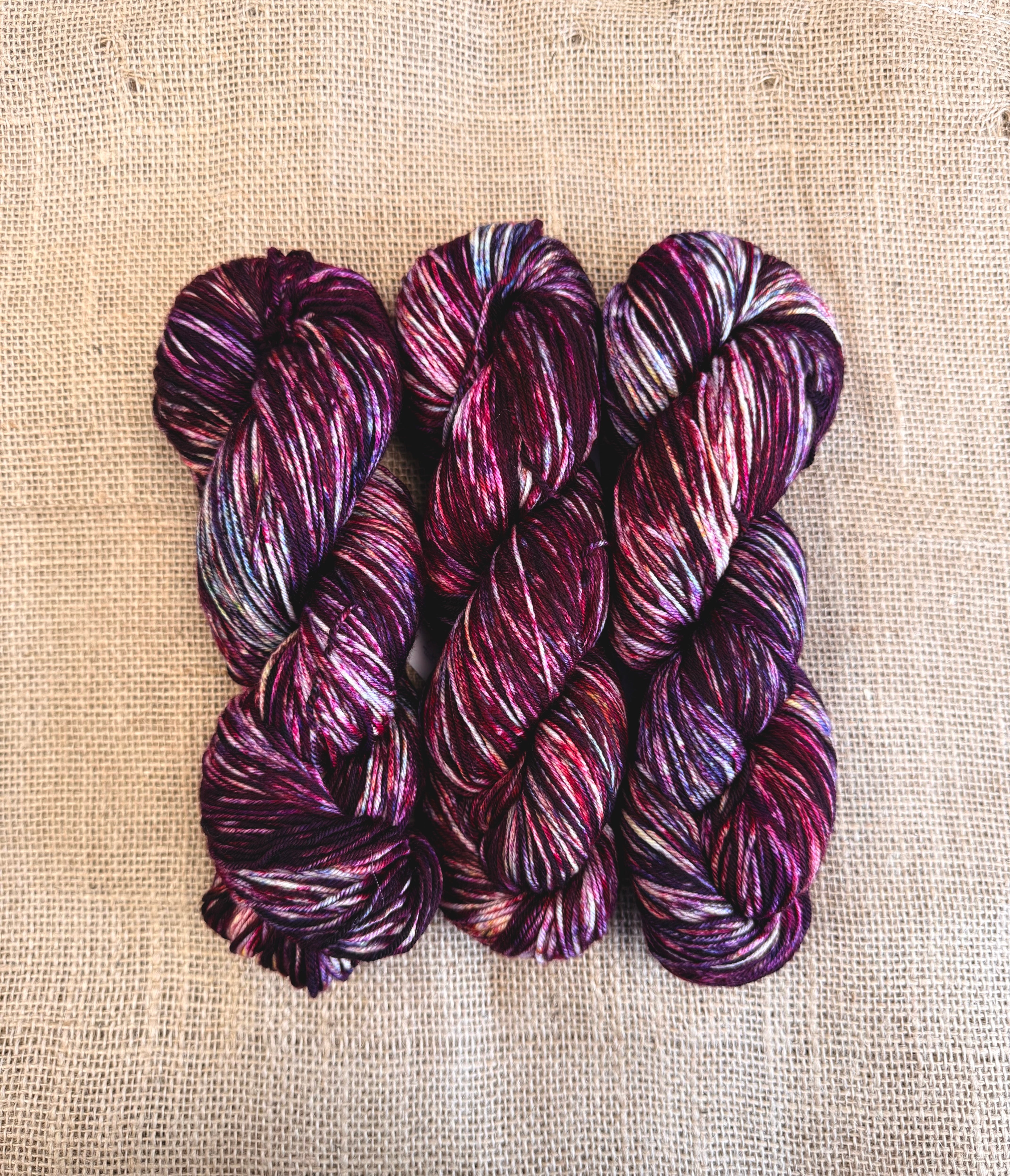 Please note that with hand-dyed yarn every skein might be slightly different - they can definitely be different from previous iterations of the same colour, but even each skein can be different from the other. Please don’t hesitate to reach out to us for pictures of what we have on hand, or include in your notes at check out your preference - that you want the skein with the most green, or the brightest skein, the darkest skein etc etc. We will do everything within our power to help you get the perfect skein for your project~