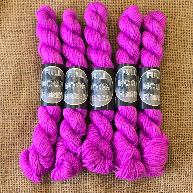 Brand: Full Moon FibresBlend: 80% Merino, 20% NylonYardage: 73yds / 66mYarn Weight: 1: Fingering WeightGauge: 32 stitches to 4in (10cm)Hook/Needle Size: 2.00/US0 – 2.75mm/US2Put Up: 20g skein