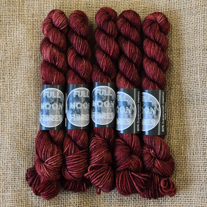 Brand: Full Moon FibresBlend: 80% Merino, 20% NylonYardage: 73yds / 66mYarn Weight: 1: Fingering WeightGauge: 32 stitches to 4in (10cm)Hook/Needle Size: 2.00/US0 – 2.75mm/US2Put Up: 20g skein