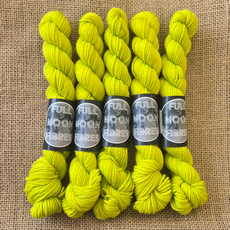 Brand: Full Moon FibresBlend: 80% Merino, 20% NylonYardage: 73yds / 66mYarn Weight: 1: Fingering WeightGauge: 32 stitches to 4in (10cm)Hook/Needle Size: 2.00/US0 – 2.75mm/US2Put Up: 20g skein