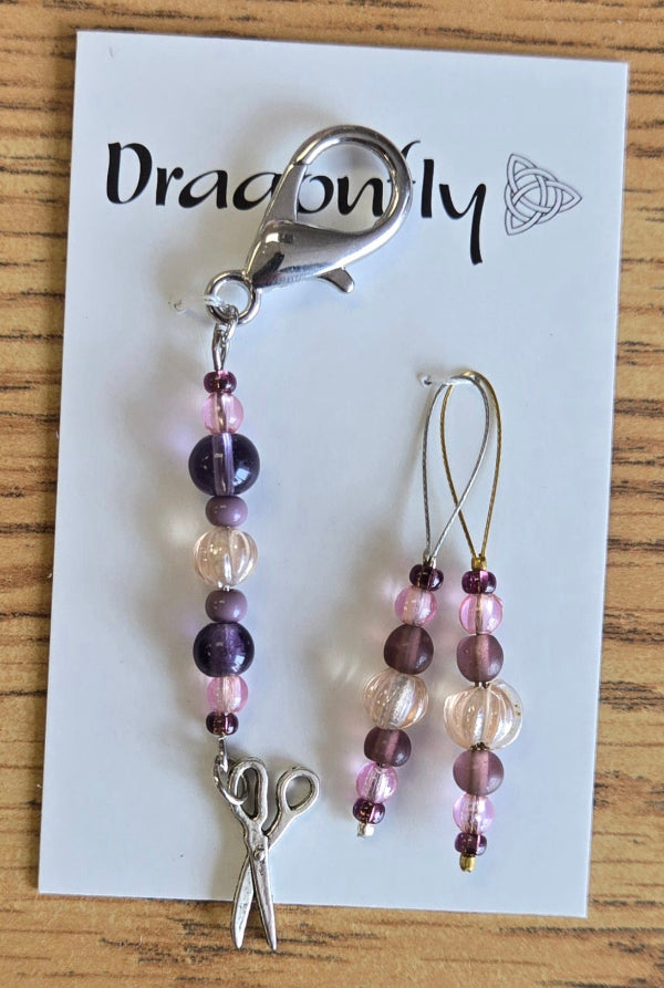 Dragonfly Handmade Stitch Marker Set, Lavender Scissors