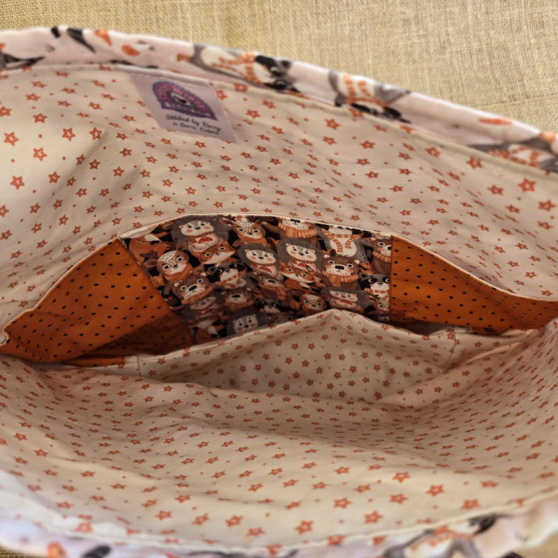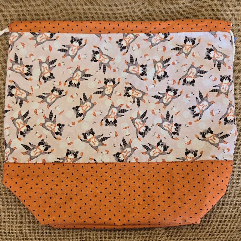 True North Drawstring Project Bags, XL - Fall Raccoons Dot Top is backordered and will ship as soon as it is back in stock.